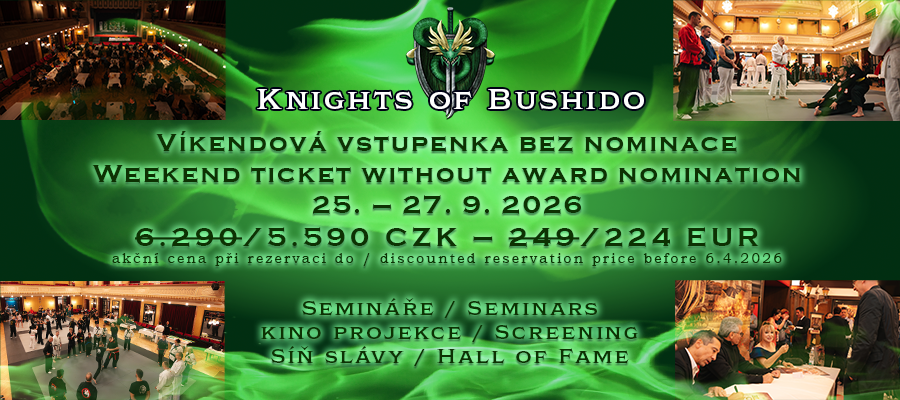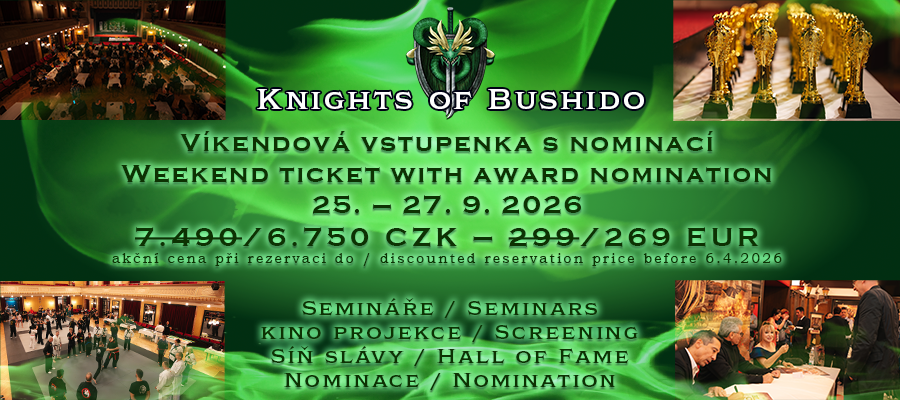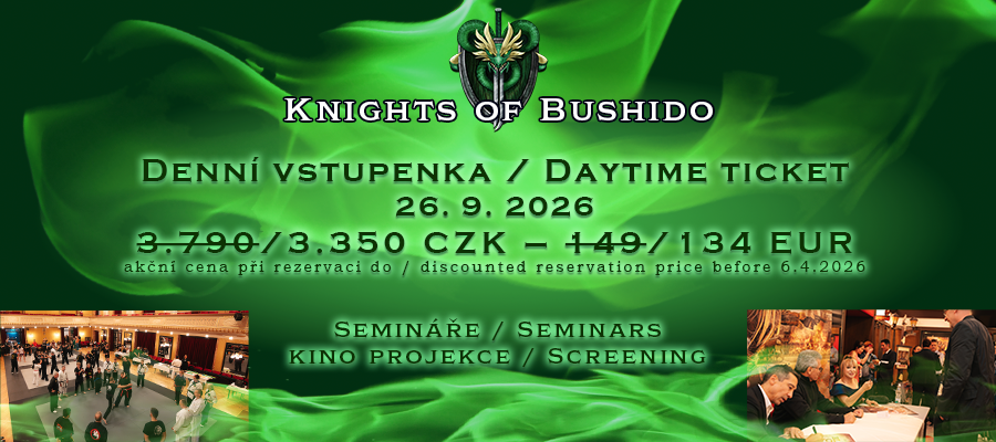 O setkání s legendami bojových umění se nemusíte bít. Na akci Knights of Bushido budou pro vás. Zažijete scénu, ve které hrajete vy, několik desítek pečlivě vybraných mistrů bojových umění a speciální hosté z celého světa. To bude pecka!